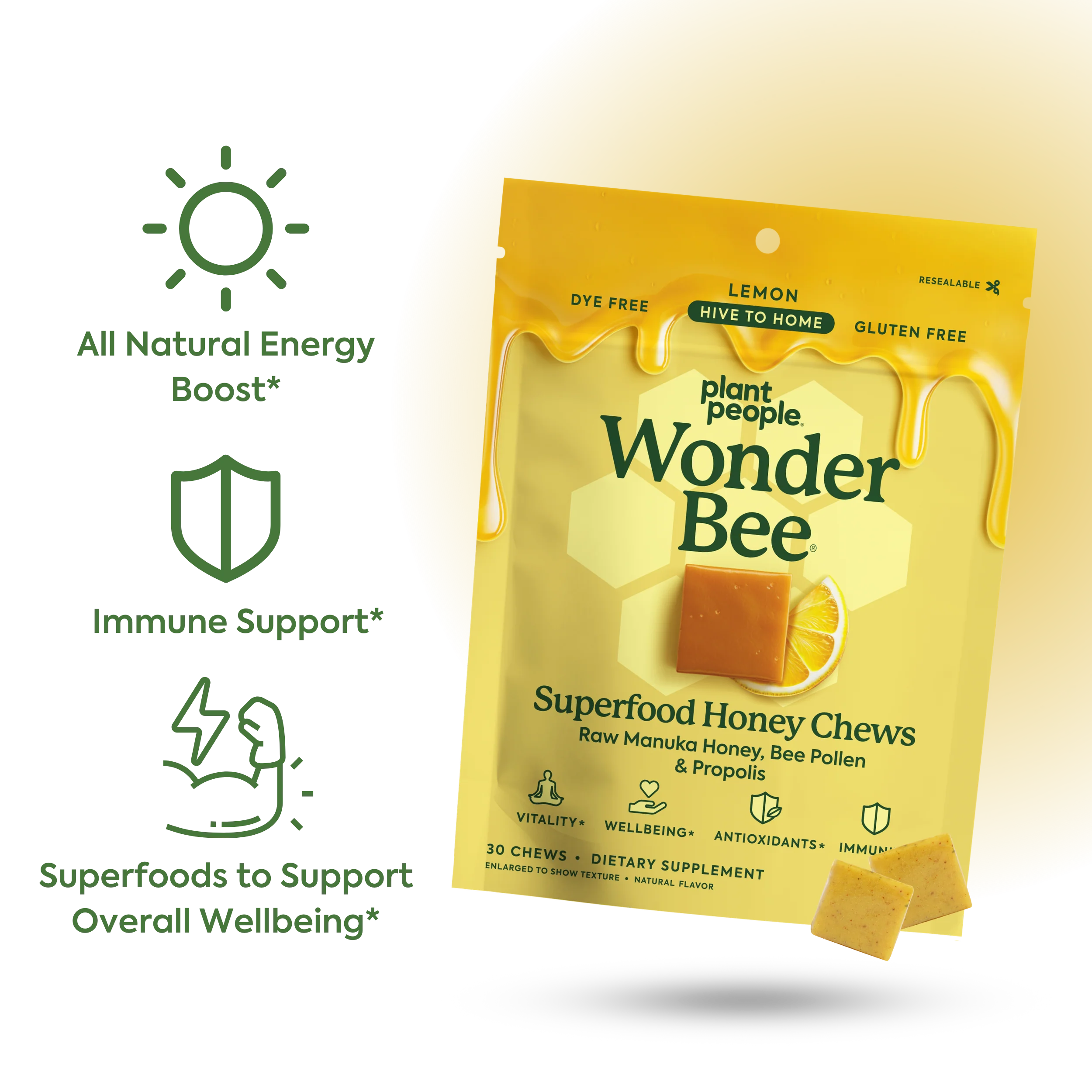 WonderBee® Superfood Honey Chews are a delicious, daily superfood supplement designed to support your vitality, wellbeing, and immune system*